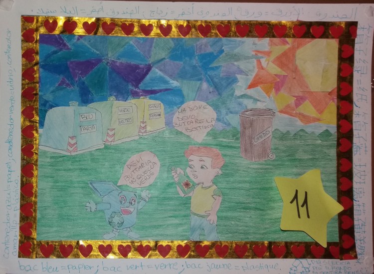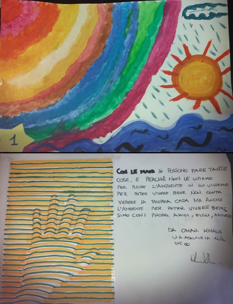 Il Progetto si è svolto in tre pomeriggi: 17 marzo 2019 – gioco con i rifiuti e i sacchi sul terrazzo al dodicesimo piano con merenda finale. Un simpatico personaggio, venuto da un altro pianeta, non sa fare la raccolta differenziata. Insieme ai bambini, cerca di apprendere le regole. Alla fine del pomeriggio insieme, abbiamo chiesto ai bambini di realizzare disegni su quanto appreso e di appenderli durante la settimana successiva in portineria.24 marzo 2019 – raccolta e numerazione dei disegni. Merenda e balli. I cittadini potevano votare il loro disegno preferito tramite appositi moduli o direttamente sulla nostra pagina Facebook.31 marzo 2019 – premiazione dei disegni esposti. Ha vinto Omar con il disegno “con le mani”.Abbiamo donato ai bambini partecipanti dei libri e alcuni gadget (cubo di Rubick).L’esperienza è stata divertente ed educativa, e ci ha dimostrato che con leggerezza e obbiettivi chiari, imparare è facile.
