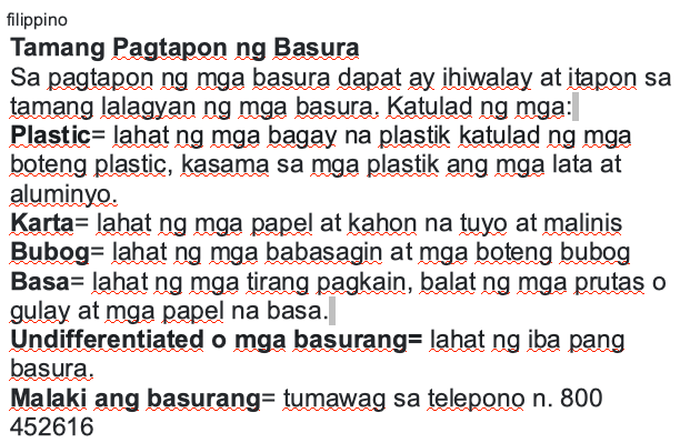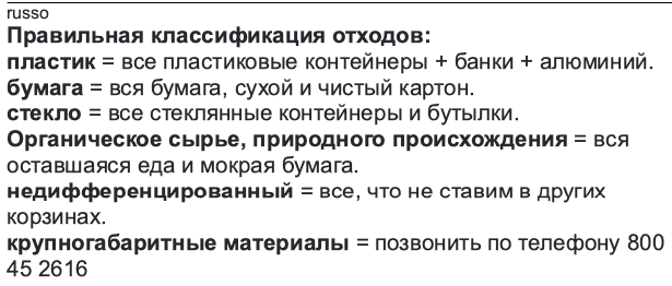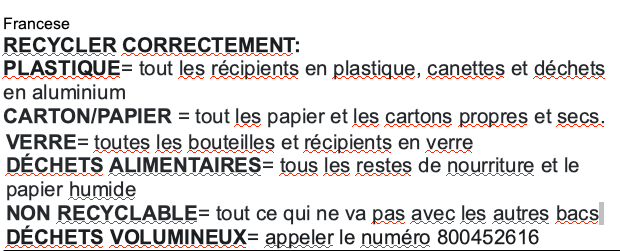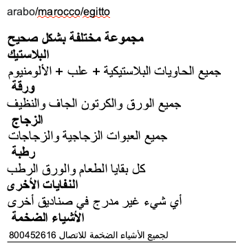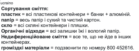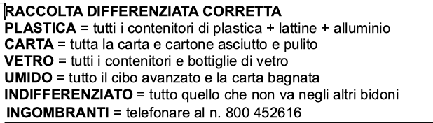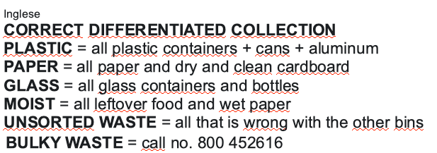 Riconoscendo la nostra particolarità di Comune multietnico, abbiamo realizzato un cartello con figure chiare e con meno scritte possibili, in modo che fosse di facile comprensione anche per chi non conosce la lingua italiana. Apposto nelle bacheche, o in vicinanza dei bidoni della raccolta, può aiutare in caso di dubbio.