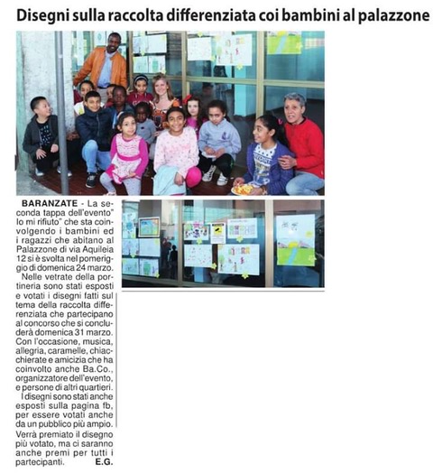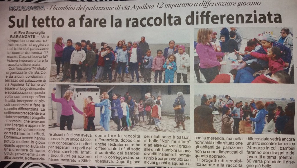 Progetto sulla raccolta differenziata attuato al Palazzo di via Aquileia 12 a Baranzate.