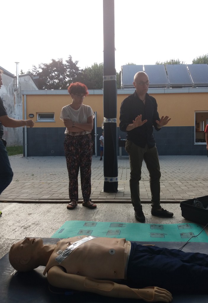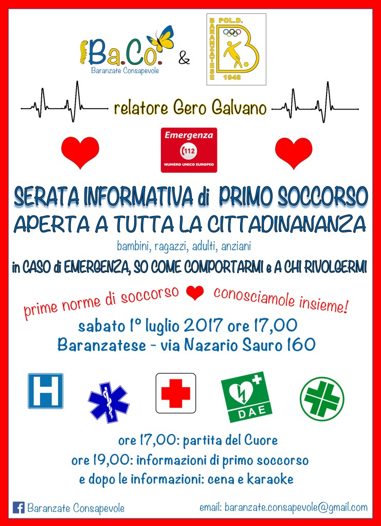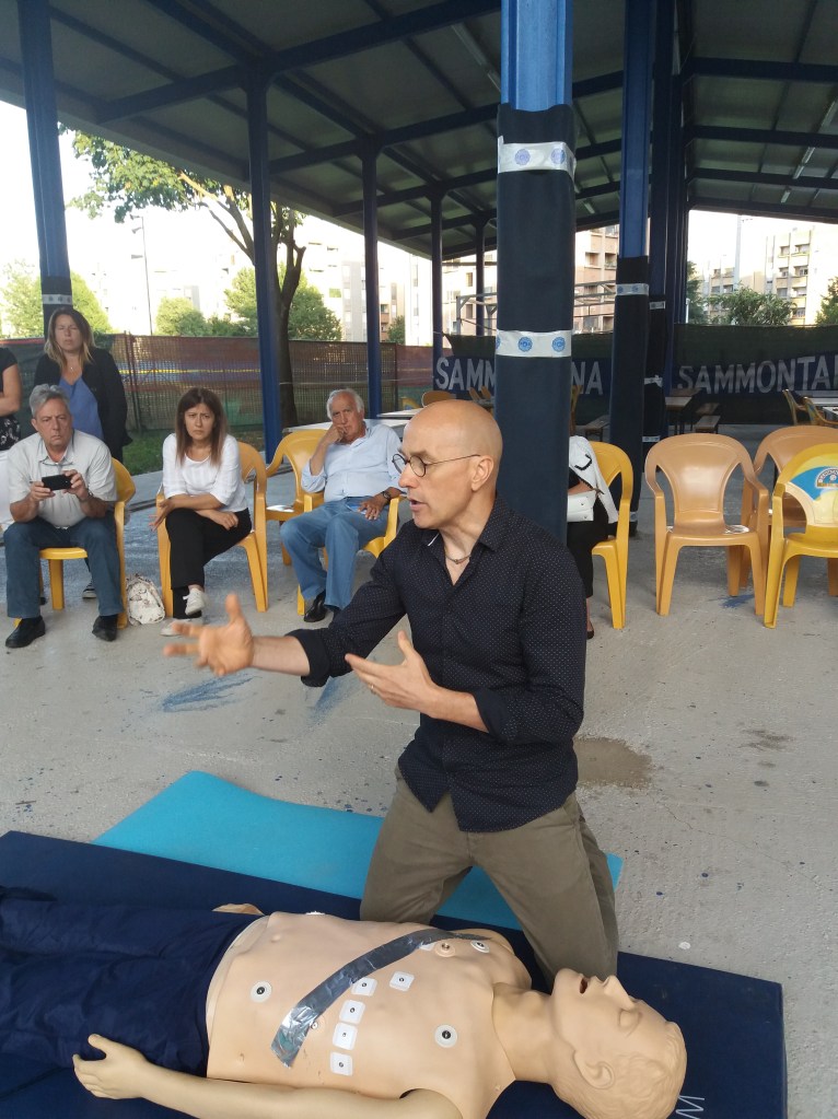 Abbiamo imparato che ci sono SOCCORRITORI LAICI, cioè persone che hanno partecipato ad un corso di specializzazione e sono autorizzati ad usare il DAE, Defibrillatore Automatico. Grazie a Gero Galvano, cittadino baranzatese e infermiere all’Ospedale Sacco di Milano, abbiamo visto l’utilità del DAE e provato a simulare un primo soccorso.