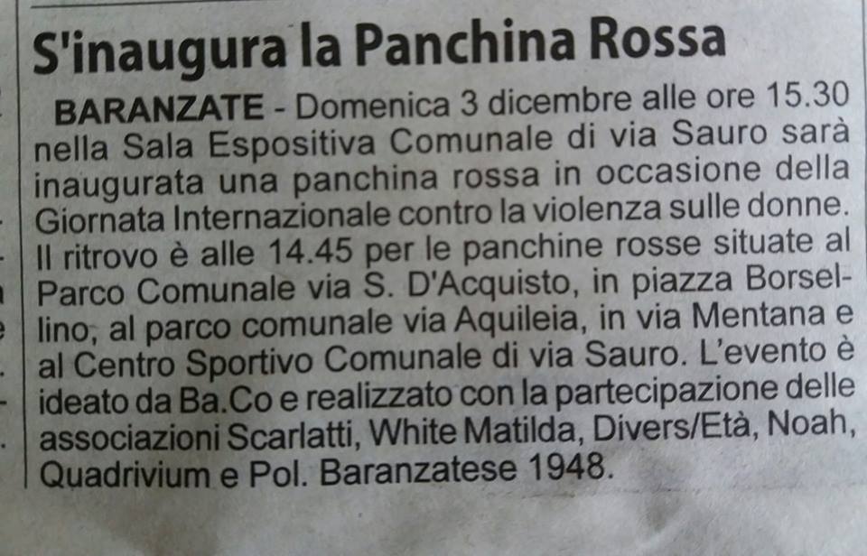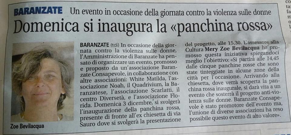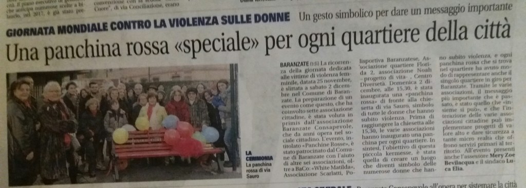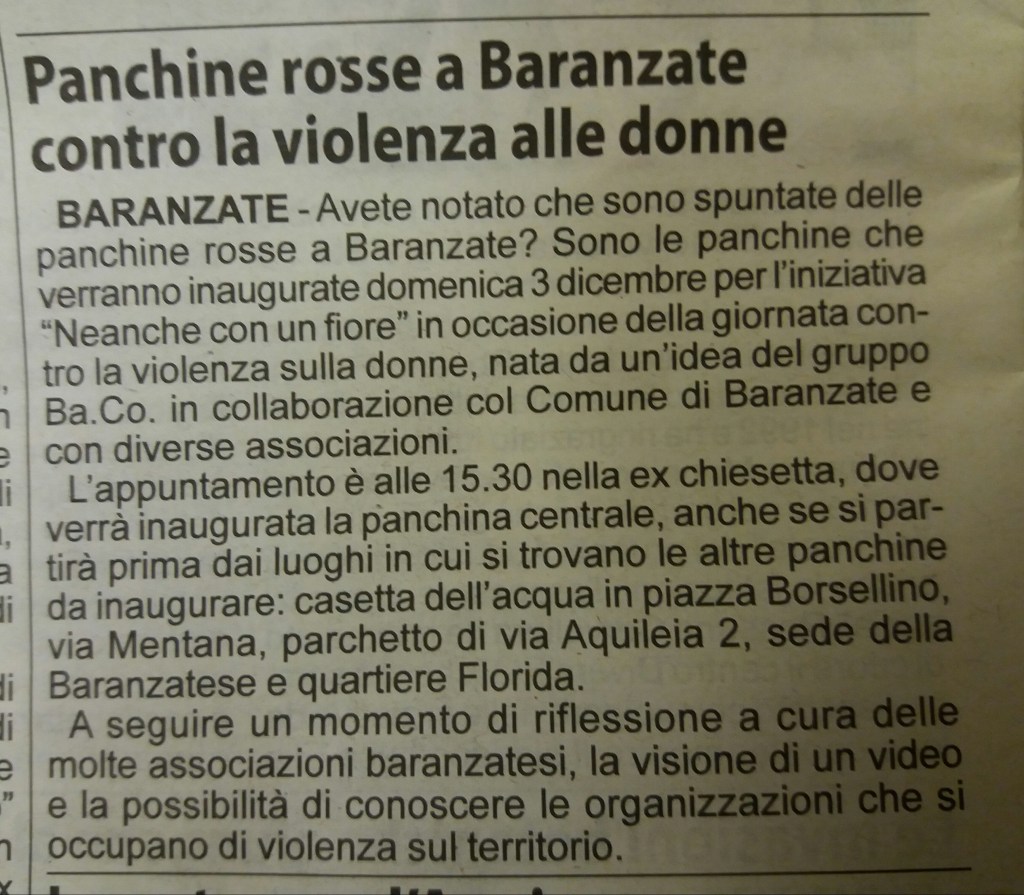 Abbiamo insieme dipinto panchine rosse nei vari quartieri baranzatesi, come promemoria che rimane a ricordarci il valore delle donne.