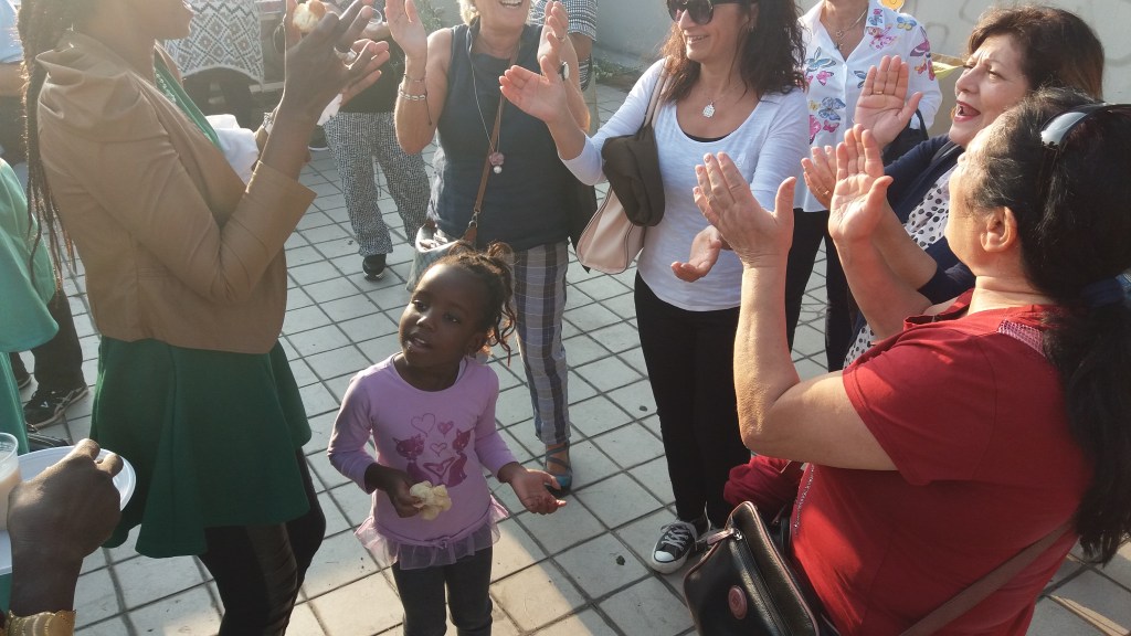 Abbiamo solo proposto questo incontro, e siamo stati accolti con allegria, con una merenda multietnica dove ognuno ha preparato qualcosa da condividere. E, come sempre, bambini con un entusiasmo straordinario!