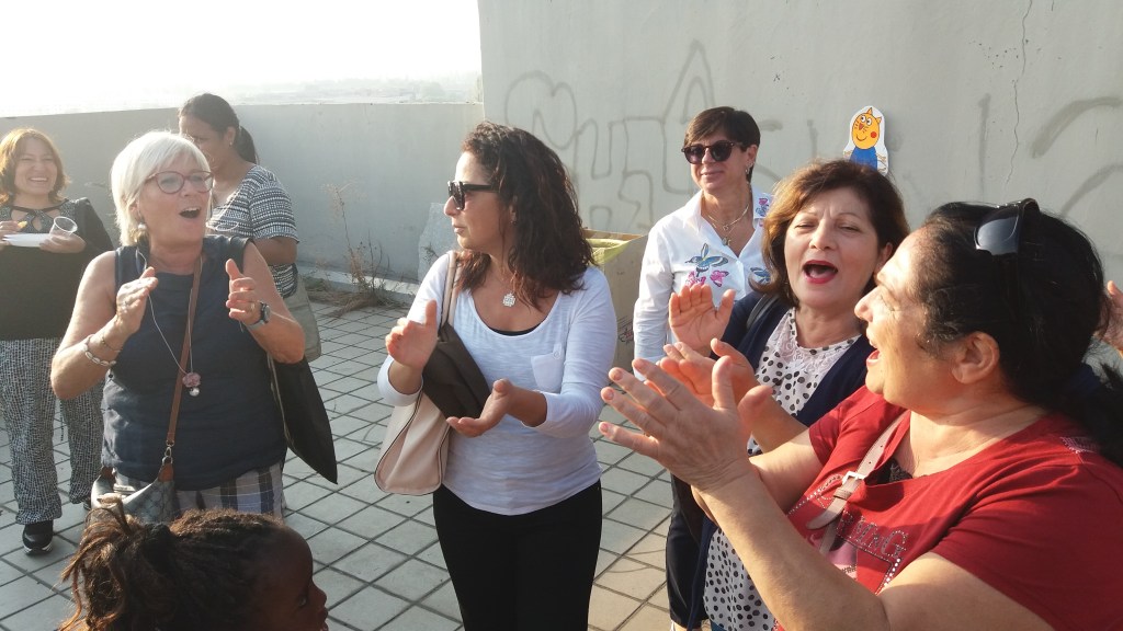 Abbiamo passato un meraviglioso pomeriggio multicolore sul terrazzo al dodicesimo piano, invitando anche chi in questo Palazzo non ci abita, e mostrano quanto amore vive in quella costruzione grigia.