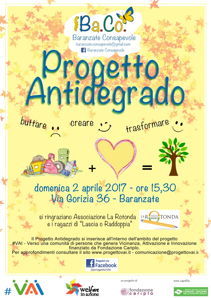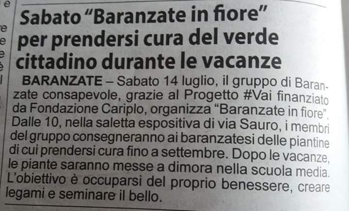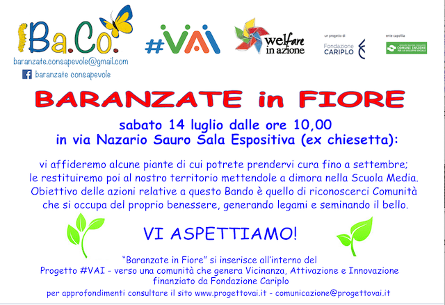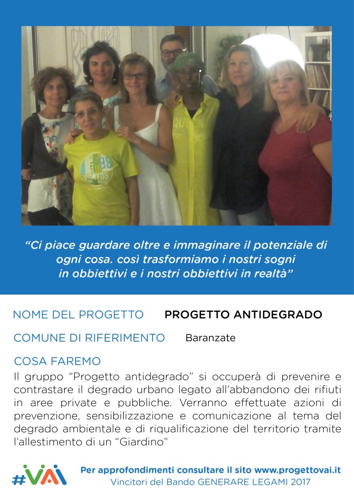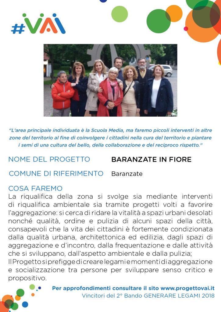Il nostro GRAZIE al BANDO VAI, a IL GRAFO/CONSORZIO SIR con Elena Annini e Paolo Gallitognotta che ci hanno sostenuti durante le azioni, al COMUNE DI BARANZATE e a COMUNI INSIEME, a DIKE con Francesco Di Ciò, all’ASSOCIAZIONE LA ROTONDA con Samantha Lentini e Laura Fichera, e ai ragazzi di LASCIA O RADDOPPIA.