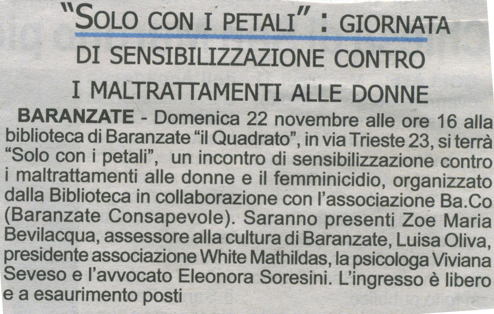 Infine, gli interventi degli operatori dell’Ass White Matilda e Noah-Progetto di vita, Associazioni che si occupano concretamente dell’assistenza alle donne in difficoltà.