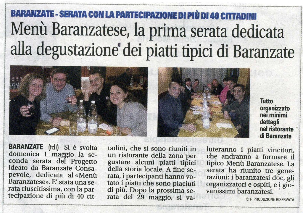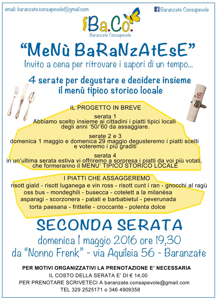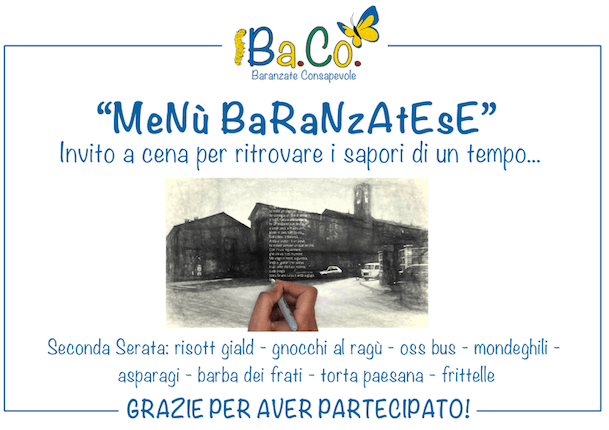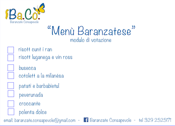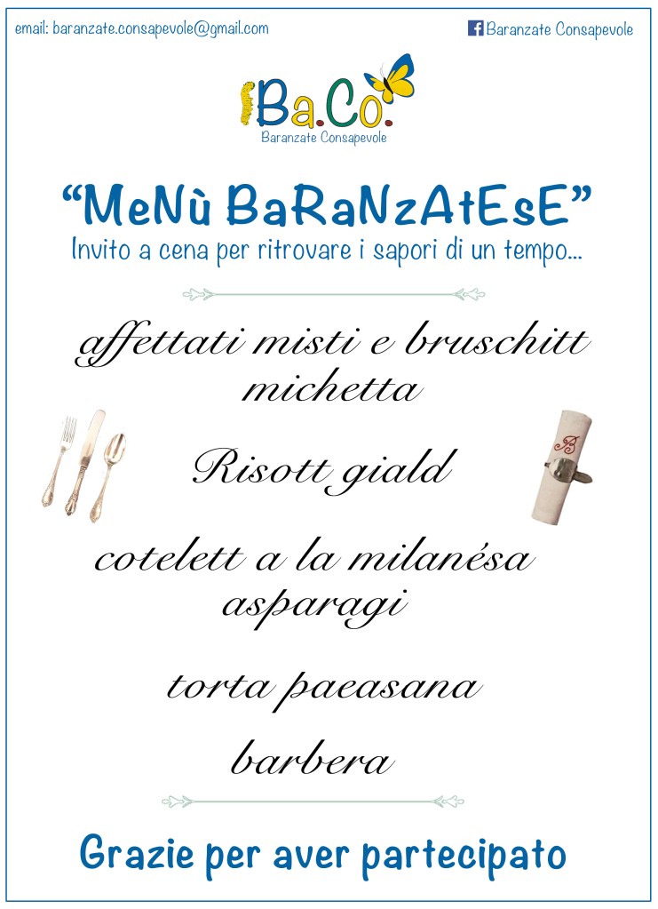 Per sapere quali sono stati i piatti più votati dai partecipanti e che formano quindi il MENU’ BARANZATESE, basta scendere fino in fondo all’articolo ^_^