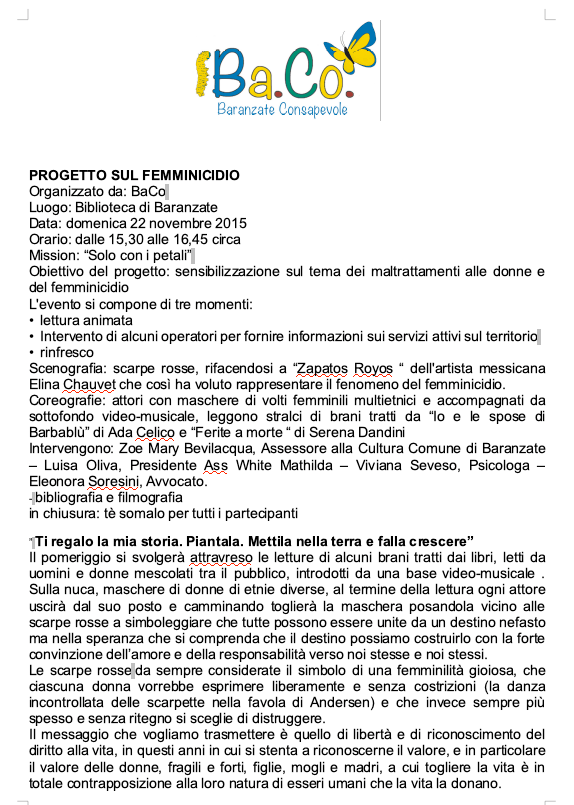 Eventi “contro la violenza alle donne” non è un termine che desideriamo usare, perché siamo convinti che gli eventi hanno senso se “a favore” di qualcuno o qualcosa. Il modo più efficace per dissolvere la violenza contro le donne è quello di valorizzarle, renderle consapevoli del loro valore e della loro capacità di riuscire ad essere libere di volersi bene. Una donna serena è una madre serena e una cittadina serena. Il mondo ha bisogno di donne in pace.