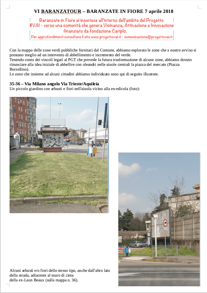 BARANZATOUR 7 APRILE 2018 – INDIVIDUIAMO LA ZONE DA FAR FIORIRE