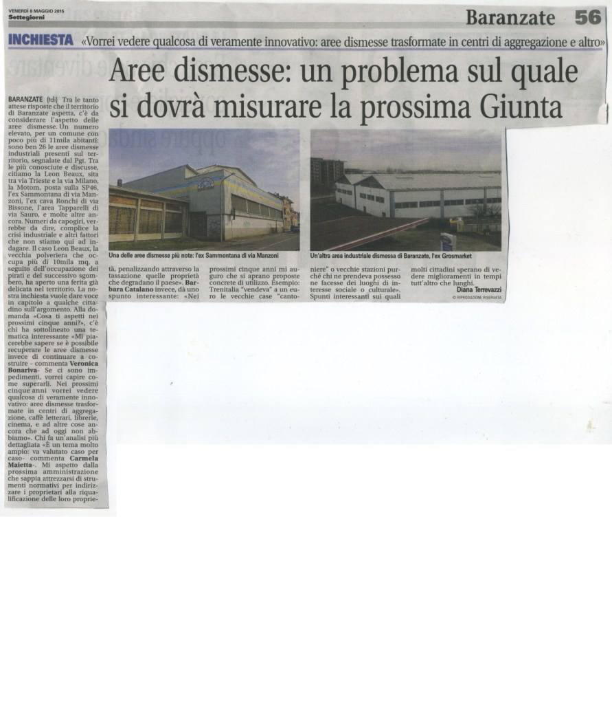 NEL 2015, abbiamo fatto una ricerca sulle aree dismesse sul territorio baranzatese. Ci sono aree dismesse pubbliche ma soprattutto aree dismesse private. Siamo andate a fotografarle e a raccogliere alcune informazioni, potete vedere il frutto della nostra ricerca nel video pubblicato qui sopra.